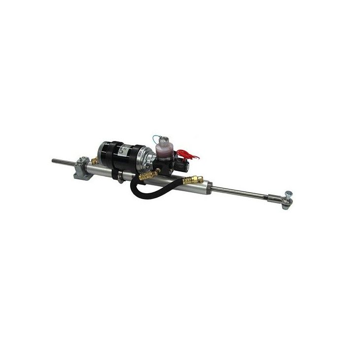 An Octopus Hydraulic Linear Actuator is a simple, effective way to drive the rudder on a boat equipped with a mechanical steering system. The linear actuator is an assembly of an Octopus reversing pump and a marine hydraulic cylinder. This assembly is mounted on the rudder tiller-arm or quadrant. When the autopilot is not in use the cylinder runs freely along with the rudder. When the automatic pilot is in use a solenoid valve on the actuator closes and locks the cylinder. Steering signals from the pilot are now fed to the D.C. motor, which drives the pump to move the cylinder back and forth. De-energized, the solenoid valve immediately disconnects the automatic pilot from the rudder. The actuator has a small translucent oil reservoir, making it easy to check fluid levels. These actuators have only five moving parts. Mechanical simplicity gives our product reliability and ease of service when compared to complicated gear and screw actuators, making our units a favorite for offshore mariners. These actuators are shipped from our factory completely filled with oil and require no additional plumbing.